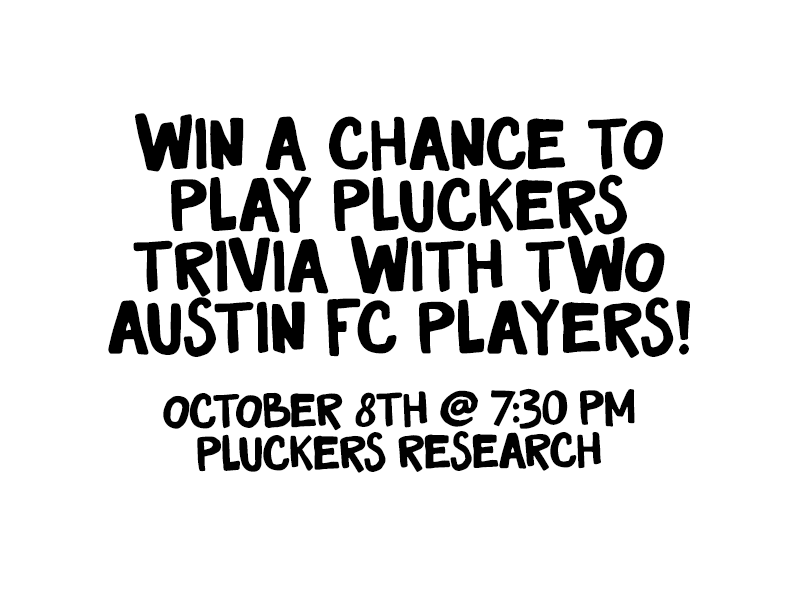 Todos los miércoles a las 7:30 de la noche Pluckers organiza la mejor noche de trivia de la ciudad. Trae a tus amigos y gana cientos de dólares en tarjetas de regalo. ¿No eres un genio del Trivial? ¡No hay problema! Incluso un equipo al azar gana una tarjeta de regalo sólo por participar.